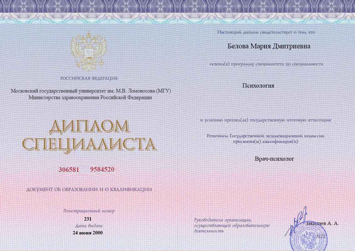В 2000 окончила - Московский государственный университет им. М.В. Ломоносова (МГУ), факультет психологии